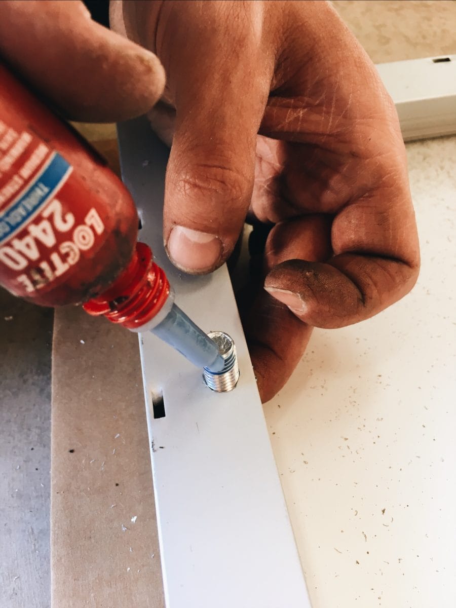 (10) In order to fit thicker 3/8″ bolts into the 1/4″ holes on the HighTec solar panel, we drilled out the hole with a 3/8″ bit. Be more careful than us and put a small piece of wood or metal between the drill bit and the solar panel so the drill bit doesn’t accidentally hit the panel.